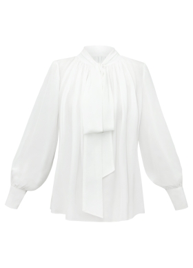 Camasa alba din matase naturala cu funda Naya