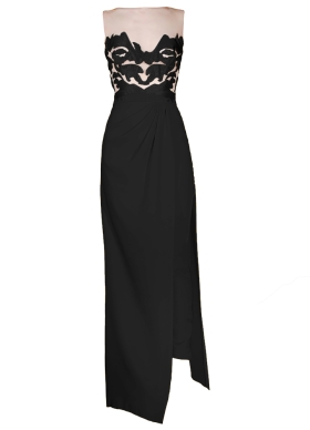 Exterior: Silk crepe (40% natural silk, 40% polyester, 20% elastane), Tulle (100% polyester)