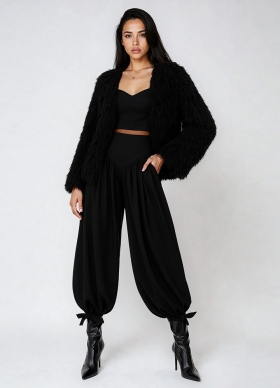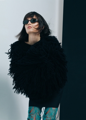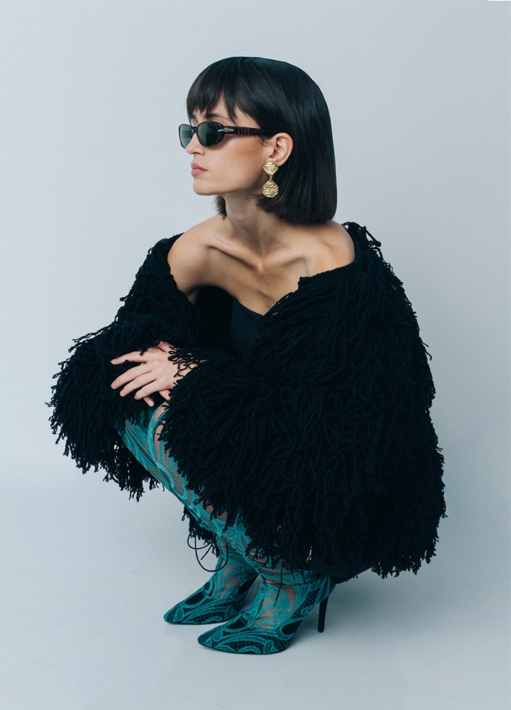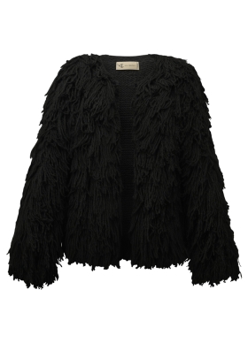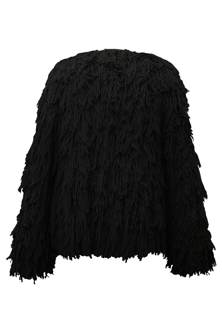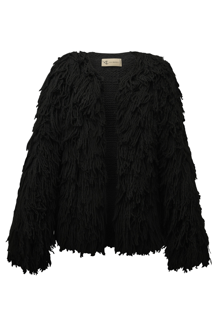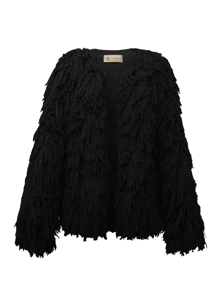 Jacheta neagra din lana tricotata manual cu maneci lungi Hecate