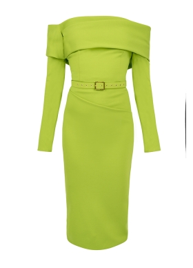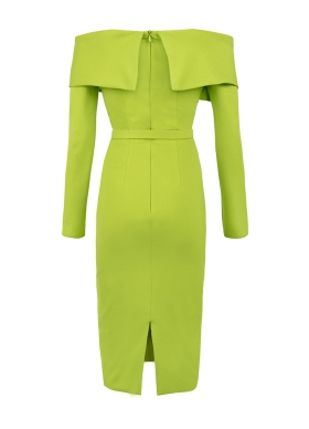 Rochie cocktail midi lime din vascoza cu decolteu pe umeri Calliope