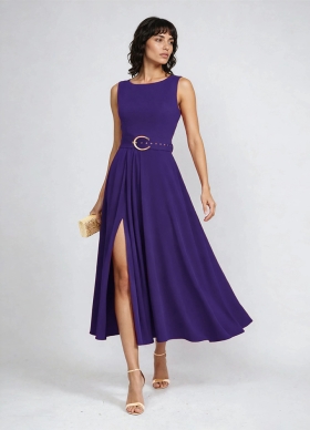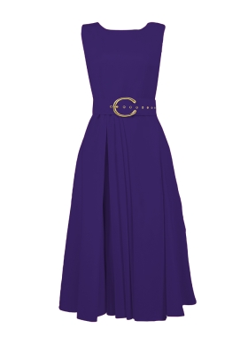 Rochie cocktail midi mov cu buzunare si curea asortata Vienna