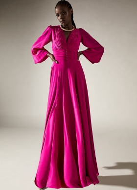 Rochie lunga din matase cu talie marcata si decolteu in V Azaria