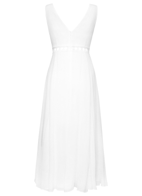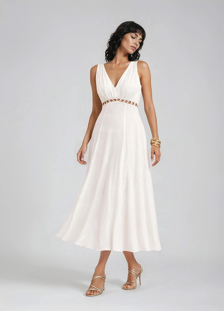 Rochie midi alba din vascoza cu decolteu in V Elio