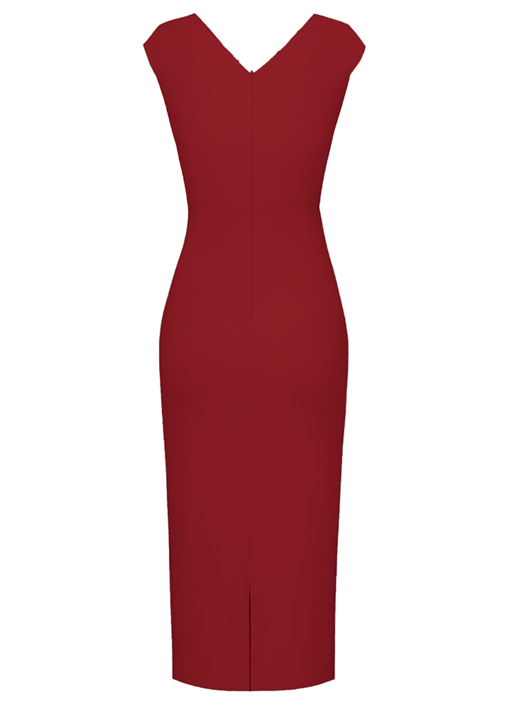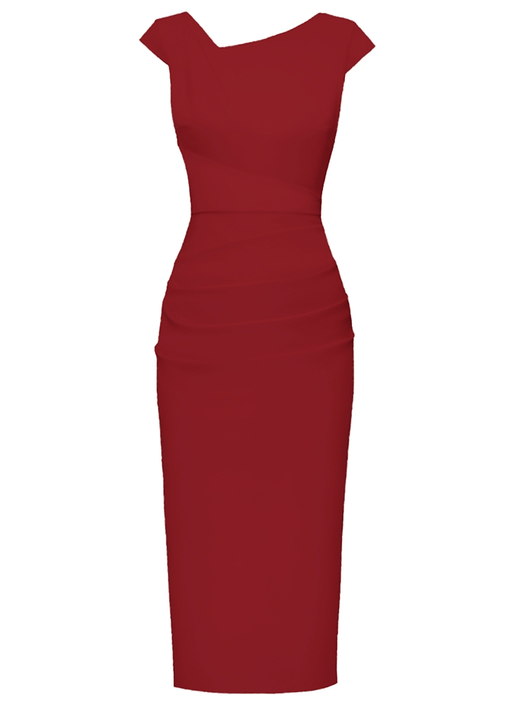 Rochie rosie bodycon midi model office drapat Akaani