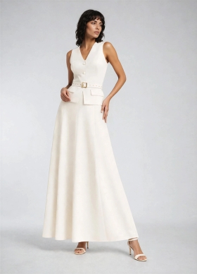 Set alb ivoire format din vesta si fusta lunga in clini Kalista