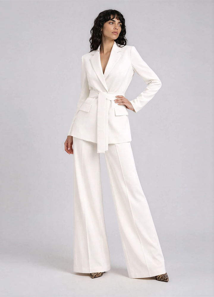 Set ivoire format din sacou si pantaloni drepti cu pense si buzunare Terra
