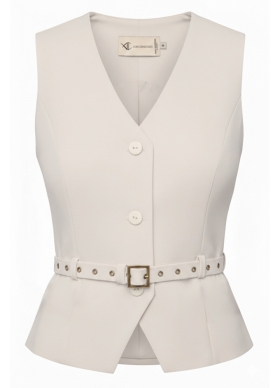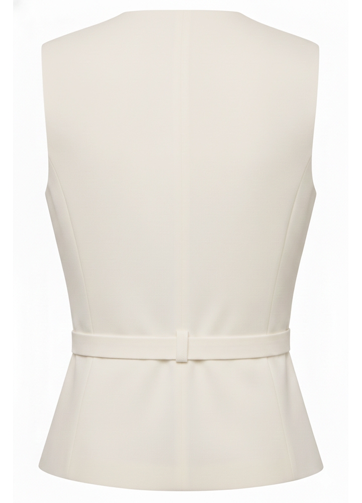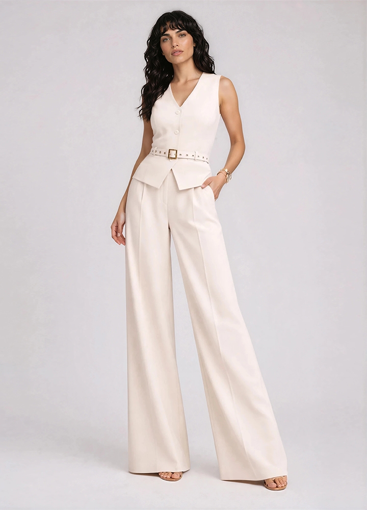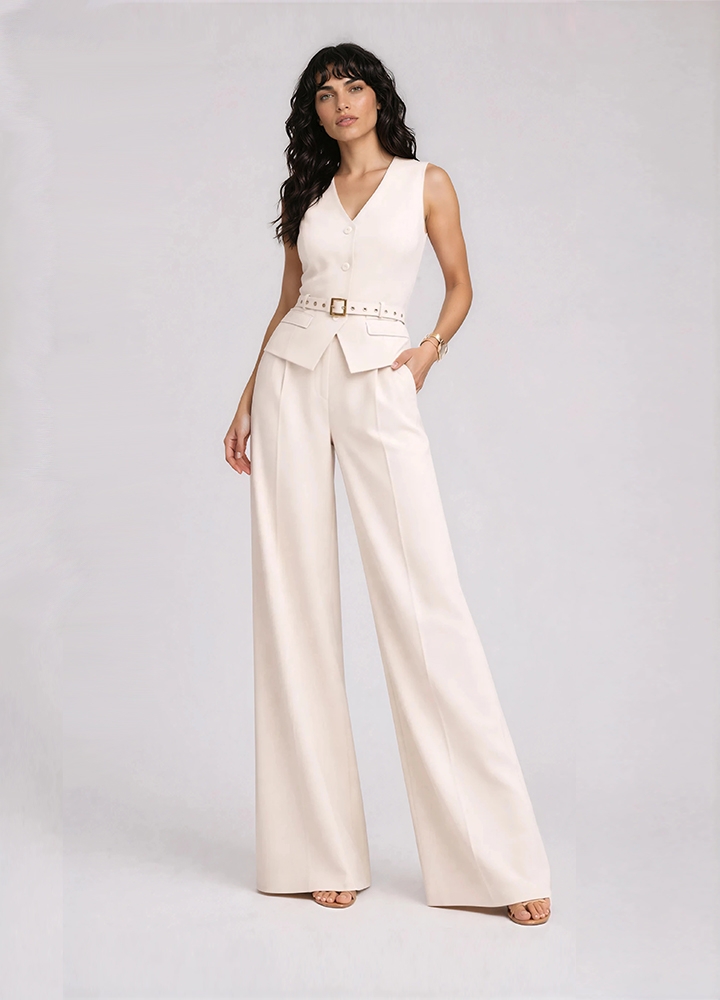 Set ivoire format din vesta si pantaloni drepti cu pense si buzunare Anika