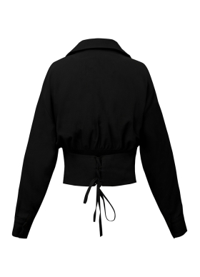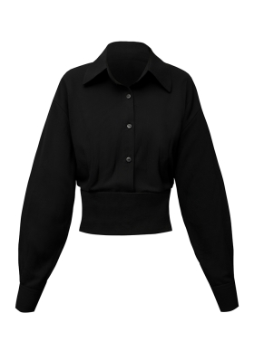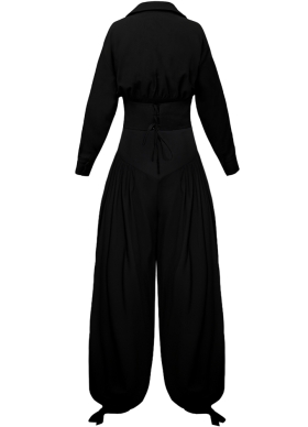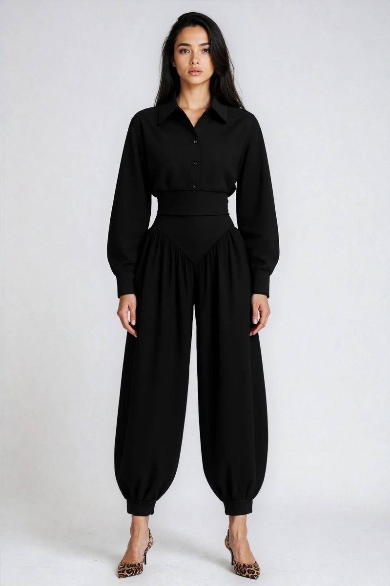 Set negru din bumbac format din camasa cu maneci lungi si pantaloni balon Obsidian
