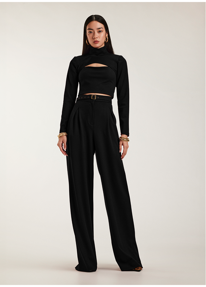 Set Office & Cocktail format din trei piese: pantalon, top cu bretele, bluza crop